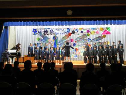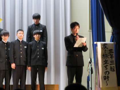 合唱コンクール,締めは3年3組「友〜旅立ちの時〜」です。