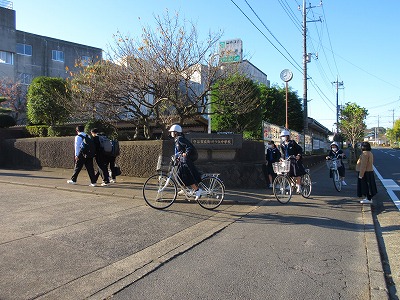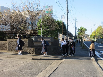 気持ちのよい晴れの中でのさわやかな登校風景です。今日も登校は早めです。素晴らしい!
