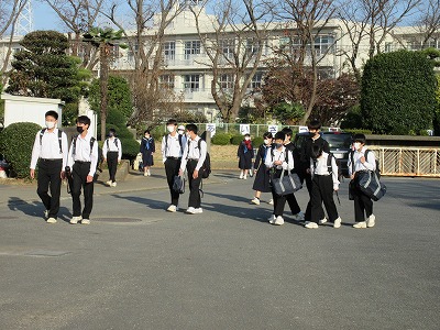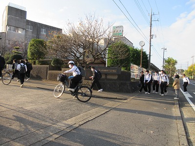 晴れた空のもと,さわやかに登校しています。今日も早めの登校です。頑張ってます!