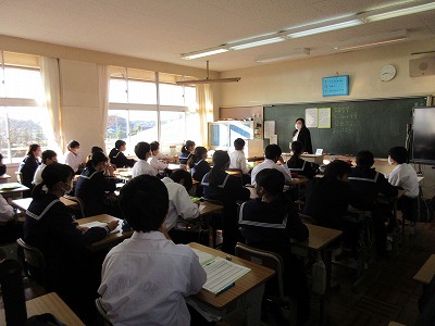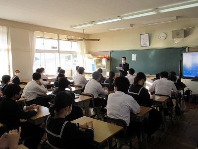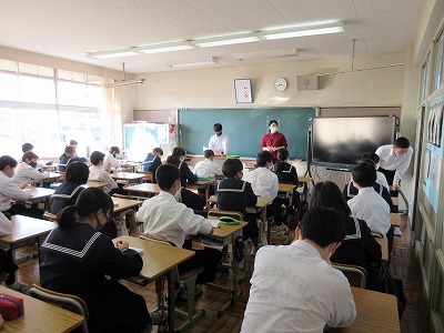 2年生の朝の会の様子です。担任からは,今日一日の予定確認や取り組みについてのお話がありました。みんな真剣に聴いています。