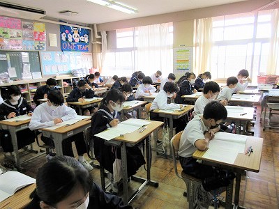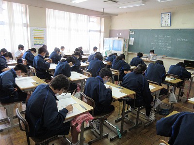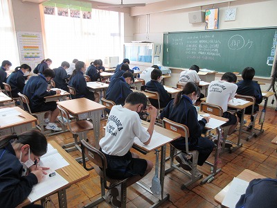 5時間目,1年生が英検IBAの筆記とリスニングのテストをしています。頑張って!