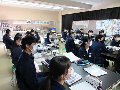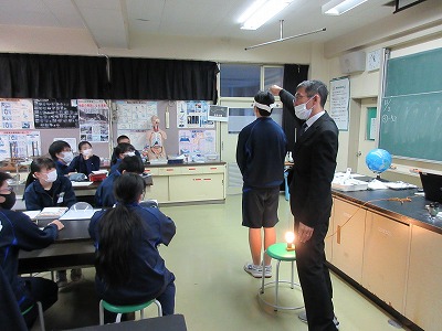 3年生の理科の授業です。天体についての学習です。実感を伴っての理解がなかなか難しい単元ですが,授業者がわかりやすいように工夫しています。仲間達も集中して説明を聴き,理解しています。