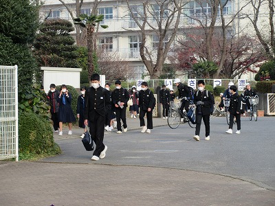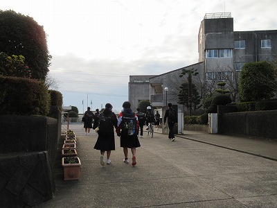 徐々に雲が多くなってきました。時間を意識して登校している姿があります。「時を守り」です。