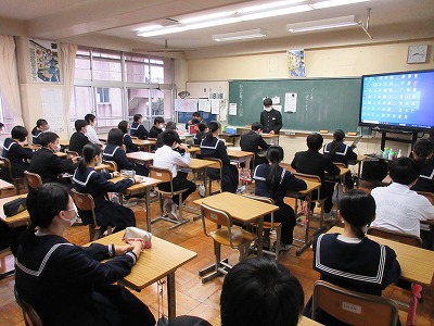 3年生の朝の会の様子です。先生の話を真剣に聴く姿があります。
