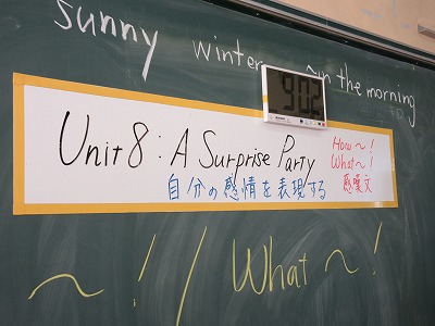 1年生の英語の授業です。今日は,自分の感情を表現する「What〜」「How〜」の活用について学んでいます。頑張れ!