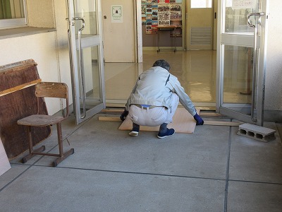 学校環境整備中 公開日 2021/12/09 更新日 2021/12/09 お知らせ 用務員さんは,学校の様々な環境を整えてくださっています。今日は,3階渡り廊下の段差をフラットにする板を新しくしてくれています。いつもありがとうございます。