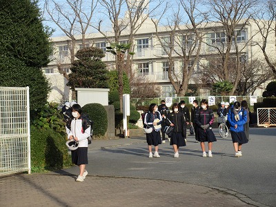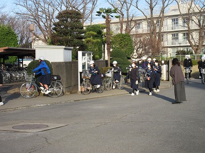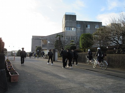 今日は冷え込んでいるように思います。防寒着を着てマフラーをして登校している生徒達が多いです。手袋をしていない生徒が目立ちます。袖に入れたり,ポケットに手を入れておいたり…。安全面を考えると手袋着用を励行します。