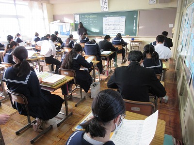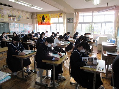 最後の学年末テストに向けて,朝の会後はほとんどの仲間達が勉強していました。頑張ってほしいと思います。