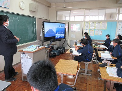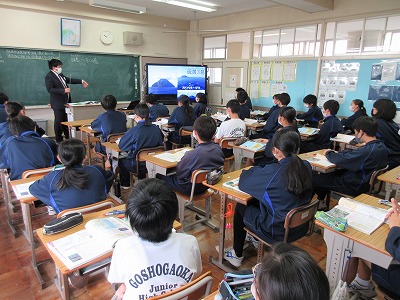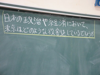 2年生の社会の授業です。地理分野です。今日は,日本の政治や経済において,東京はどのような働きをしているのか?について考えています。まずは,先生の解説を熱心に聞いています。集中しています!