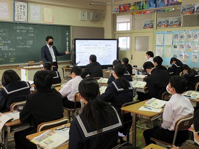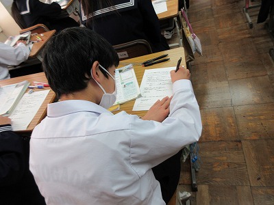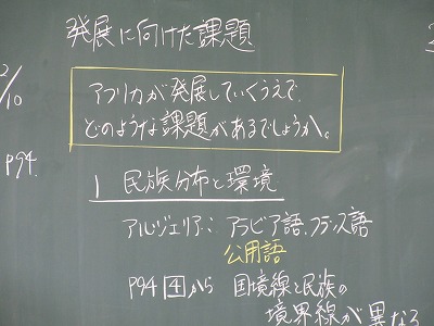 1年生の社会の授業です。地理分野です。今日は,アフリカが発展していく上でどのような課題があるのか?ということについて考えています。頑張ってます!