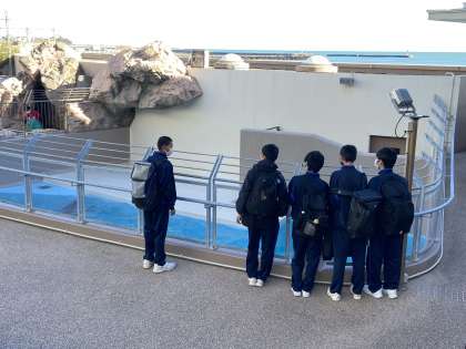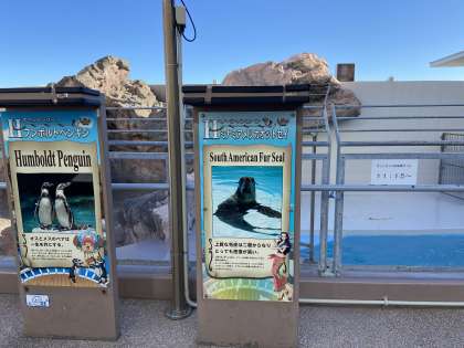 外の展示です。オットセイとペンギンで食事タイムが掲示されていて、食事の様子が見れるようになっています。