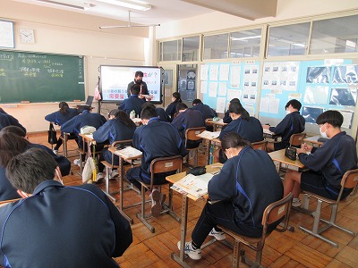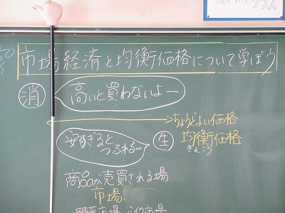 3年生の社会の授業です。公民分野です。今日は,市場経済と均衡価格について学んでいます。