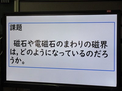2年生の理科の授業です。見えないことの学びです。今日は,磁石や電磁石の周りの次回はどのようになっているのだろう?ということについて考えています。