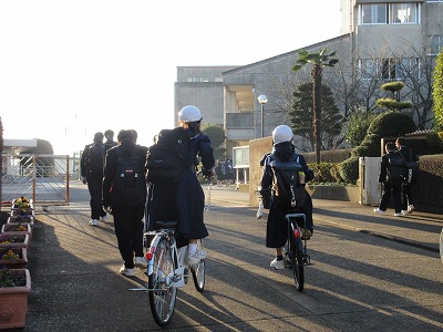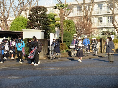 清々しい天気のもと,元気に登校しています。気温が低くなってくるとどうしても登校時間が遅くなってきます。頑張ってほしいと思います。「時を守り」です。