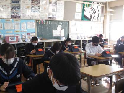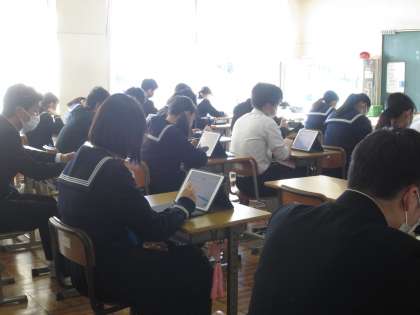 3年生は,朝の時間にiPadを使って補充学習をしています。集中して取り組んでいます。