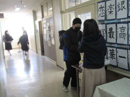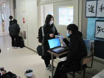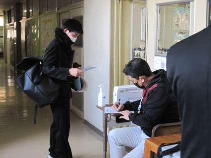 教室へ入る前の担任の先生とのコミュニケーション。今日の様子はどうかな。