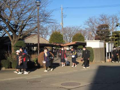 防寒対策は大事です。マフラーや手袋は必需品です。寒い中でもあいさつがよくできています。