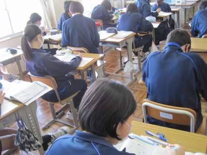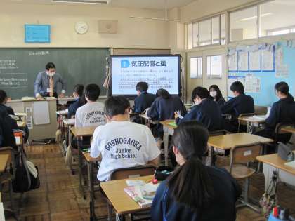 2年生の理科の授業です。気圧についての学習です。身近な天気についての知識を得ることで、天気予報の見方も変わるかもしれませんね。