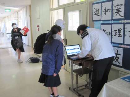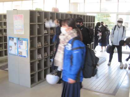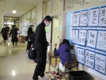 寒い中での登校で体が冷えていますが,先生との一言会話で心が温かくなります。