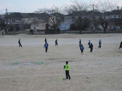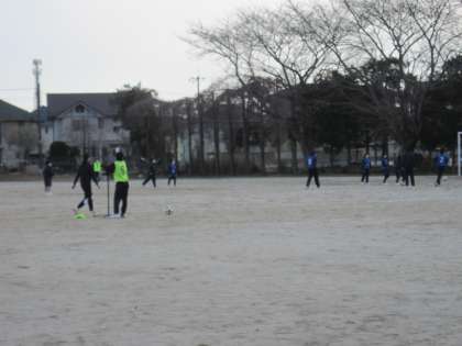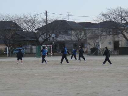 3年生の体育の授業です。サッカーをしています。マスクをつけたままなので、激しい運動は難しいですが、無理のない程度の運動量でゲームをしています。