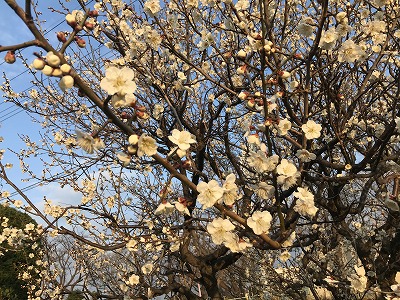 青空の広がる陽差しも眩しい朝を迎えました。昨日は冬に戻ってしまったかのような寒さでした。三寒四温という言葉通りです。春が近づいていますね。正門の梅の花も大きくひらいています。卒業式の頃に満開になるでしょうか?