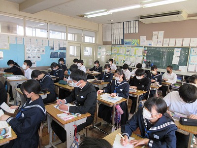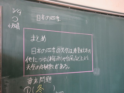 2年生の理科の授業です。今日は,日本の気候の特徴について学んでいます。日本には四季がありますが,地球温暖化の影響もあるせいか,春と秋が実時間9感じているのは私(校長)だけでしょうか?