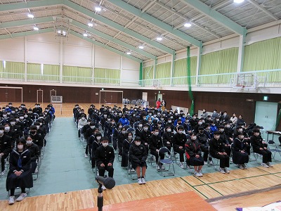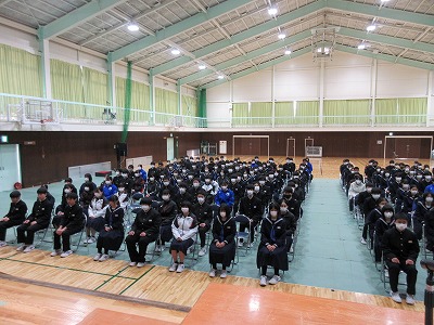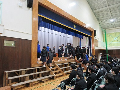 外は暖かいのですが,体育館は昨日と今朝の冷気が残っています。そんな中ですが,3年生は卒業式の予行練習にしっかり取り組んでいます。当日,締まった素晴らしい卒業式になることを確信しました。あとは,体調管理をしっかりしていきましょう。保護者の皆様のご協力もどうぞよろしくお願いいたします。
