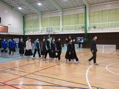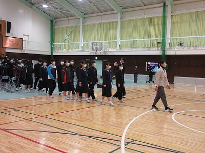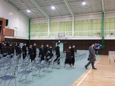 外は暖かいのですが,体育館は昨日と今朝の冷気が残っています。そんな中ですが,3年生は卒業式の予行練習にしっかり取り組んでいます。当日,締まった素晴らしい卒業式になることを確信しました。あとは,体調管理をしっかりしていきましょう。保護者の皆様のご協力もどうぞよろしくお願いいたします。