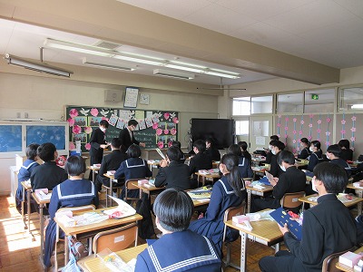 それぞれの担任がこれまでの想いを語っていました。中学校生活最後の大切な時間です。