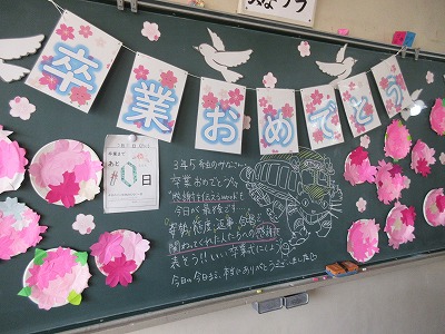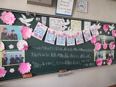卒業生のいなくなった教室… 2 公開日 2022/03/11 更新日 2022/03/11 お知らせ 3学年の廊下を歩いていると,「もうここに登校しないのか…」という一抹の寂しさを感じました。 しかし,皆さんには明るい「未来」があります。しっかり精進して夢を実現していってください。