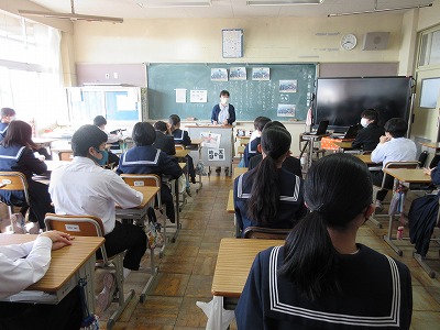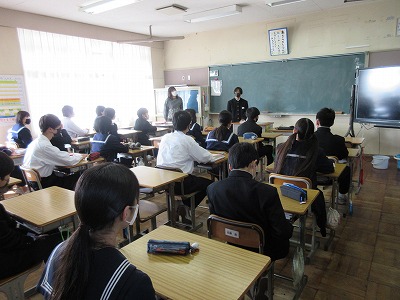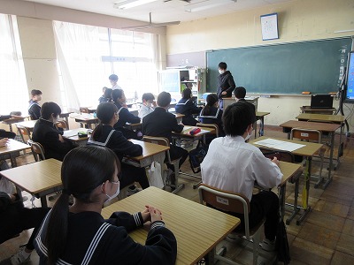 1年生の朝の会の様子です。担任の話を真剣に聴いてます。その中で,卒業式での卒業生の素晴らしさも語られていました。今日から「もう2年生,先輩である」という意識で生活してほしいと思います。