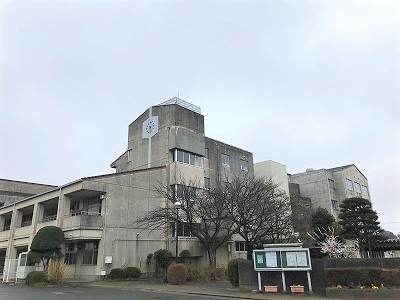 3月15日(火)小雨の朝,御所ケ丘中学校です