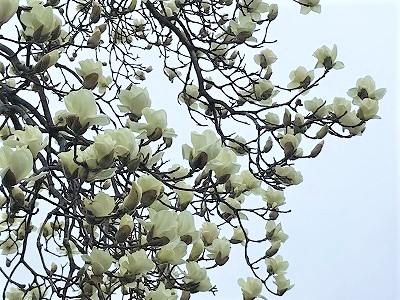 駐車場の「木蓮」の花も満開を迎えそうです。