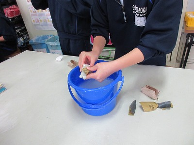 2年生の美術の授業です。「篆刻」に取り組んでいます。世界で一つしかない,各々のアイディアを生かした作品が完成しつつあります。頑張れ!
