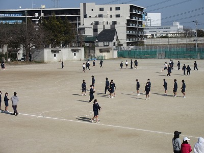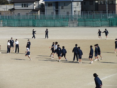 天気のよい中,1年生が5・6時間目に学年レクリエーションを行っています。みんな外で楽しそうに活動しています。画像は学級対抗しっぽとりの様子です。