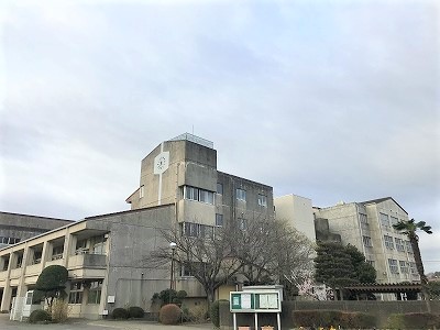 3月16日(水)曇りの朝,御所ケ丘中学校です