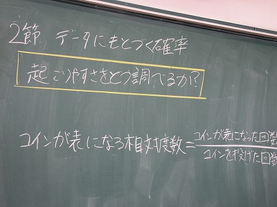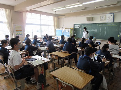 1年生の数学の授業です。確立の学びです。実際にタブレットを活用して具体的に学んでいます。頑張って!