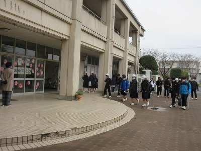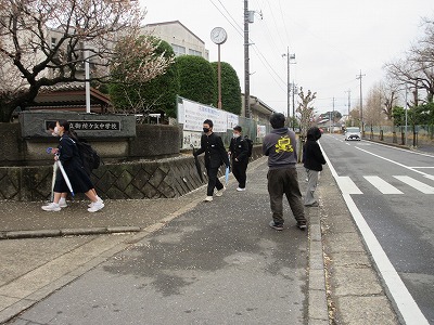 曇りの中の登校です。どんよりとした天気ですが,正門まではさわやかなあいさつが交わされています。3年生の先生方も一緒に登校指導してくれています。ありがとうございます。