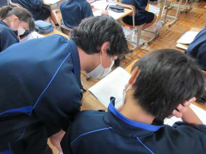 友達と教え合いながら、問題の解決に取り組む生徒たち。