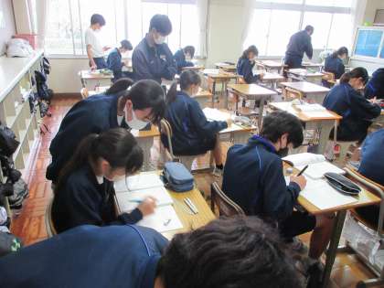 3年生の教室では、数式を展開する学習に取り組んでいました。