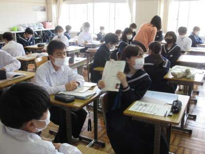 4月19日(火)授業風景 その2 公開日 2022/04/19 更新日 2022/04/19 お知らせ 2年生のとなりの教室では、英語の学習に取り組んでいました。 訪れたい国とその理由を英語で質問したり、答えたりする学習です。 生徒たちの元気な声が、たくさん聞こえていました。