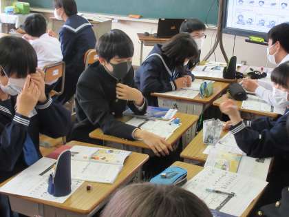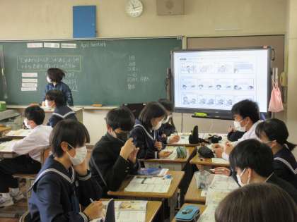 グループで話し合ったり、ALTに聞いてみたり、笑顔で学習している姿が見られました。