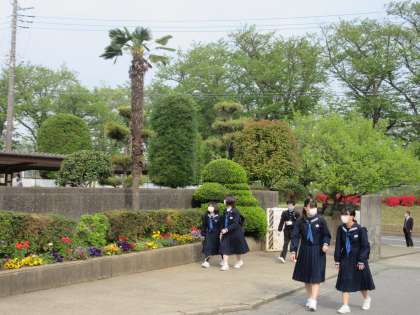 曇りがちな天気の中ですが、今日も生徒たちは、元気に登校してきています。