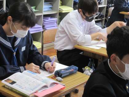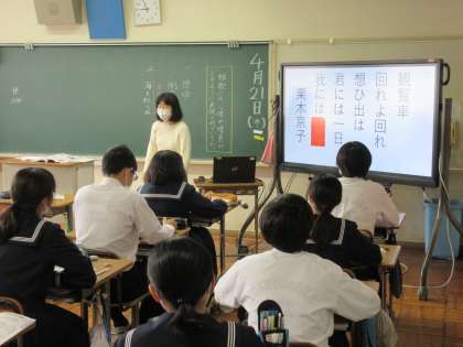 短歌の一部を隠し、どんな言葉が入るか考える学習から、生徒たちの想像を広げていく取組をしています。生徒たちの発想の豊かさを感じる瞬間でした。