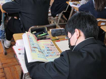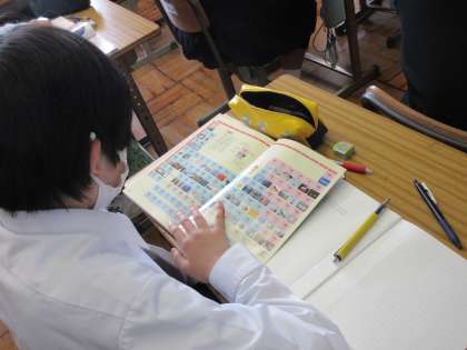 元素という言葉を知り、元素記号について興味をもって教科書を見る生徒のようすが見られました。