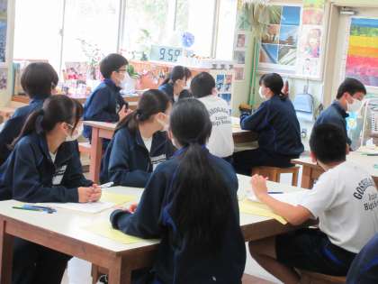 創造を広げるため、グループで話し合う活動を取り入れています。