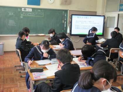 「考え、議論する」道徳の授業を目指し、生徒ともに、道徳の学習をすすめていきます。