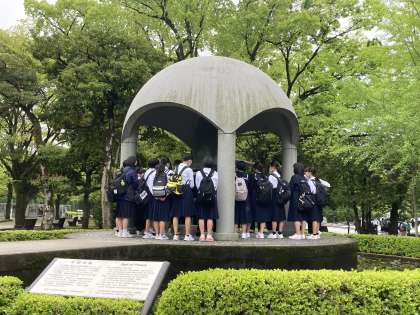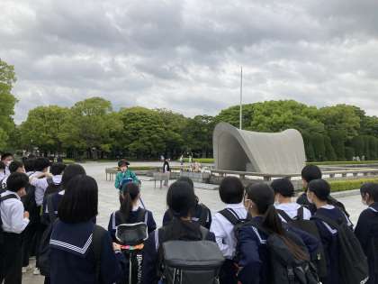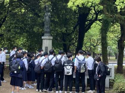 午後は、平和記念公園内にある、慰霊碑、鐘や像などの見学です。