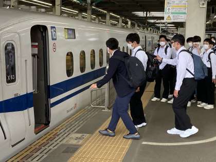 5時6分、広島発の新幹線で京都に戻ります。新幹線の乗り方も、生徒たちはすっかり慣れたようです。