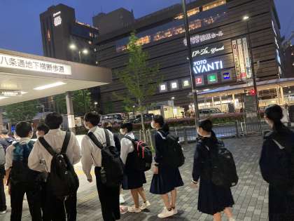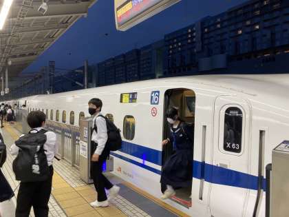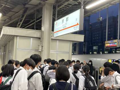 午後6時50分、京都駅に到着しました。バスに乗り、いよいよ宿泊先に向かいます。生徒たちは、みんな元気です。